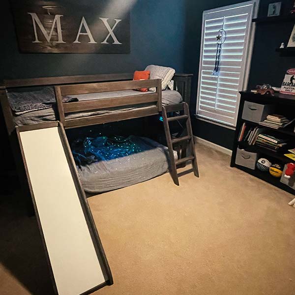 This is room is perfect for children under 10. Includes bunk beds and a slide, perfect for maximun horseplay and cousin sleep-overs.